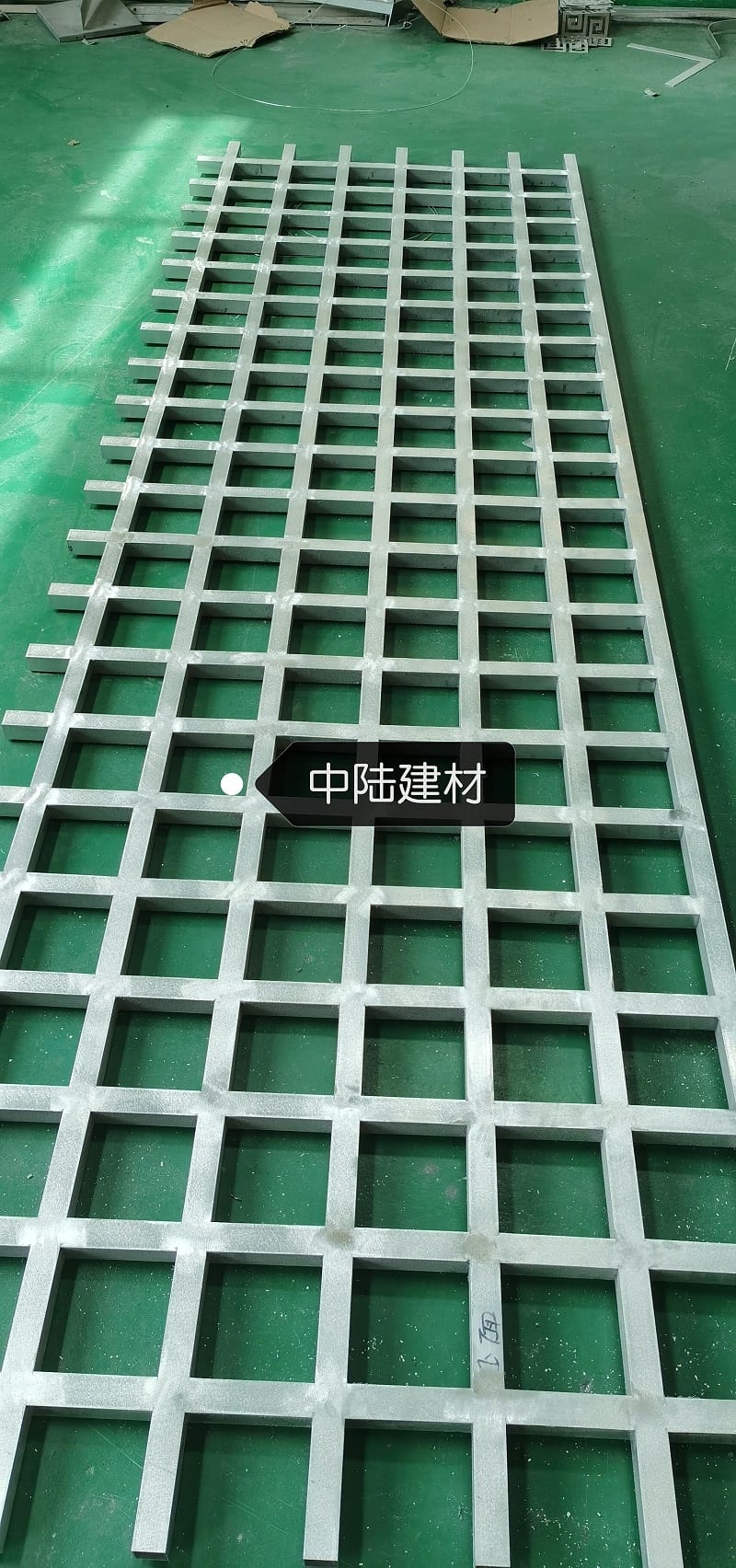 铝单板在制作过中为艰难的地方便是格栅处的制作,因为需在做出设计师的理想效果,格栅都是采用10公分左右的铝方通一点一点焊接而成。四个焊工,整整花了四天才完成焊接工作,更别提前期的出图,裁剪,而后一道工序更是难操作,要在10公分左右的格子上贴木纹完成木纹效果。
